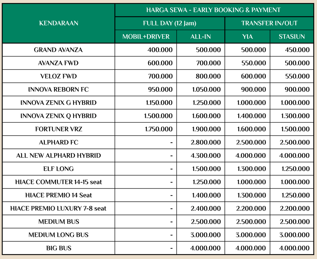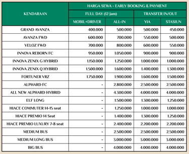 Harga tidak berlaku untuk libur natal dan tahun baru, hari raya idul fitri