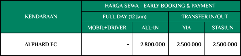 Harga Early Booking dan Early Payment berlaku untuk pemesanan dan pembayaran lunas miimal 1 bulan sebelum tanggal perjalanan