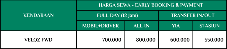 Harga Early Booking dan Early Payment Berlaku untuk Pemesanan dan Pembayaran Lunas Minimal 1 Bulan Sebelum Tanggal Perjalanan