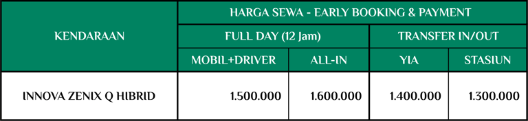 Harga early booking dan early payment berlaku untuk pemesanan dan pembayaran lunas minimal 1 bulan sebelum tanggal perjalanan